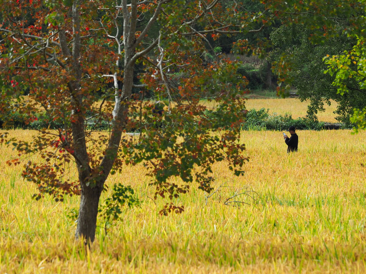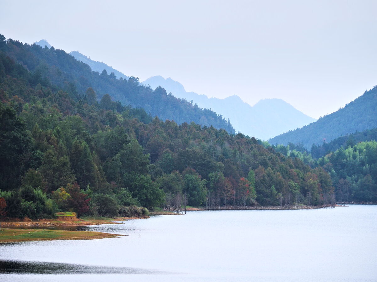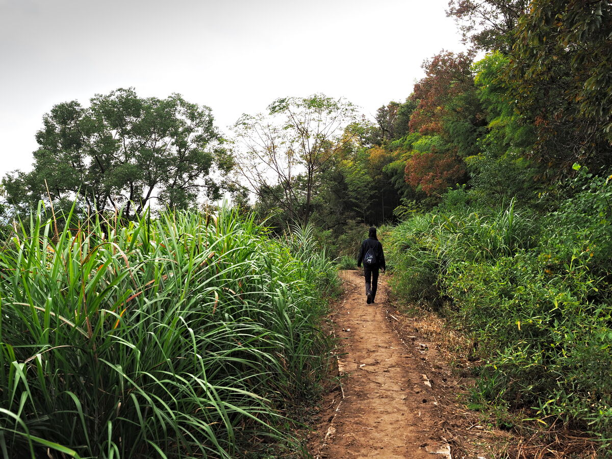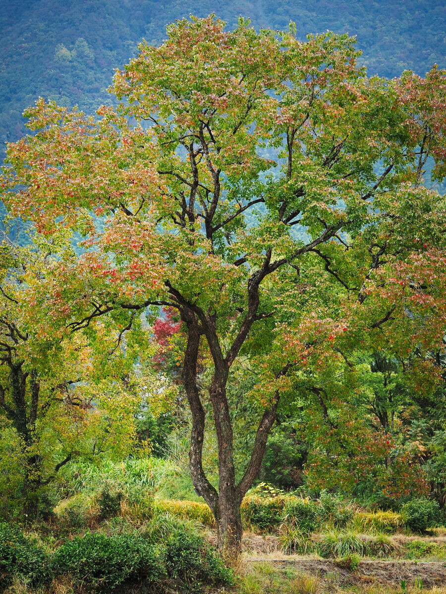A hike between the rice fields and mountains near Hongcun Village and Tachuan Village in China, Anhui Province.
