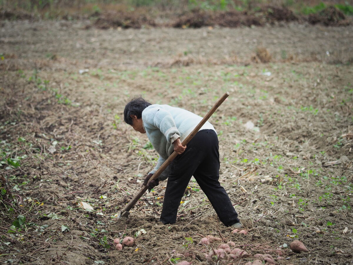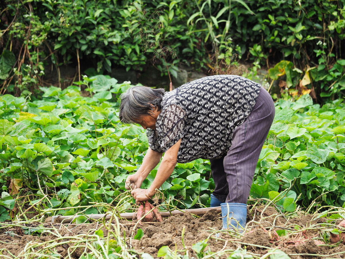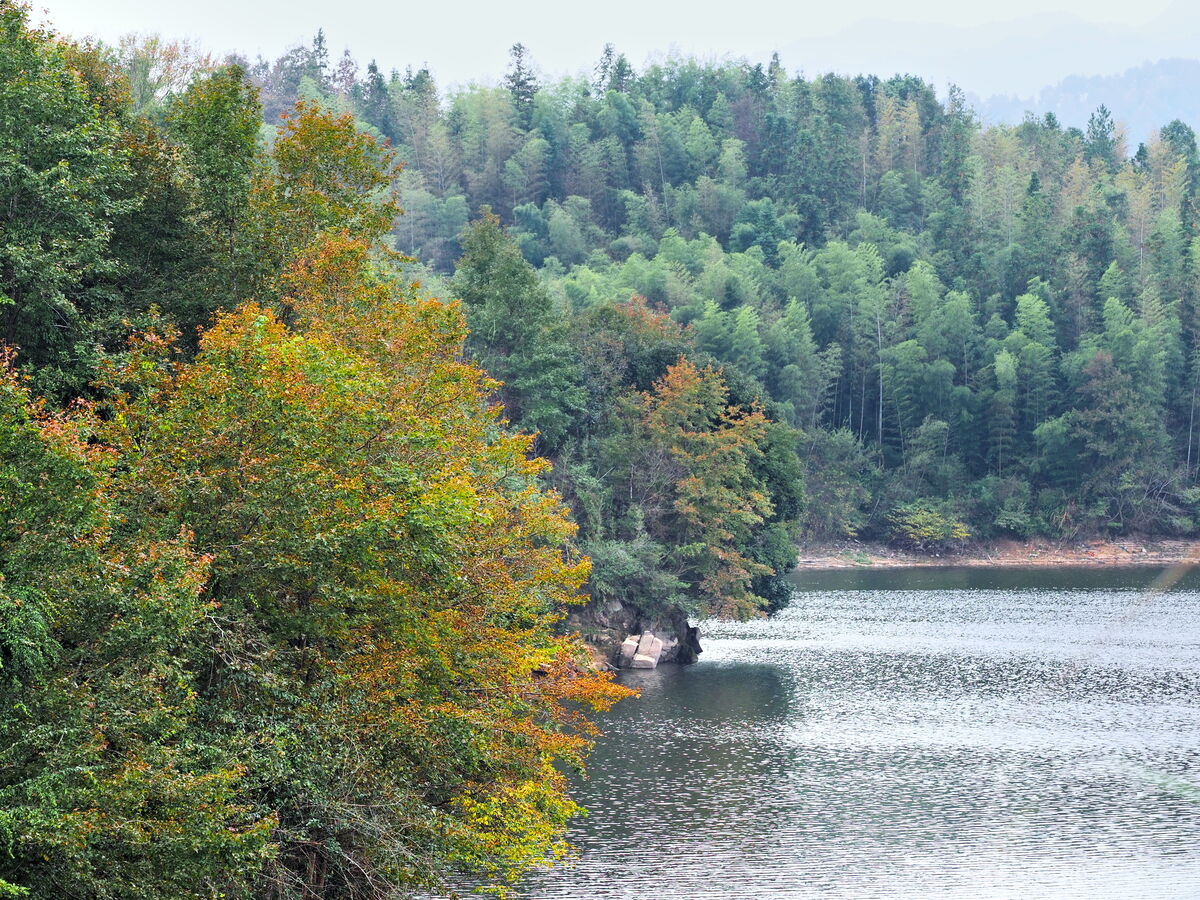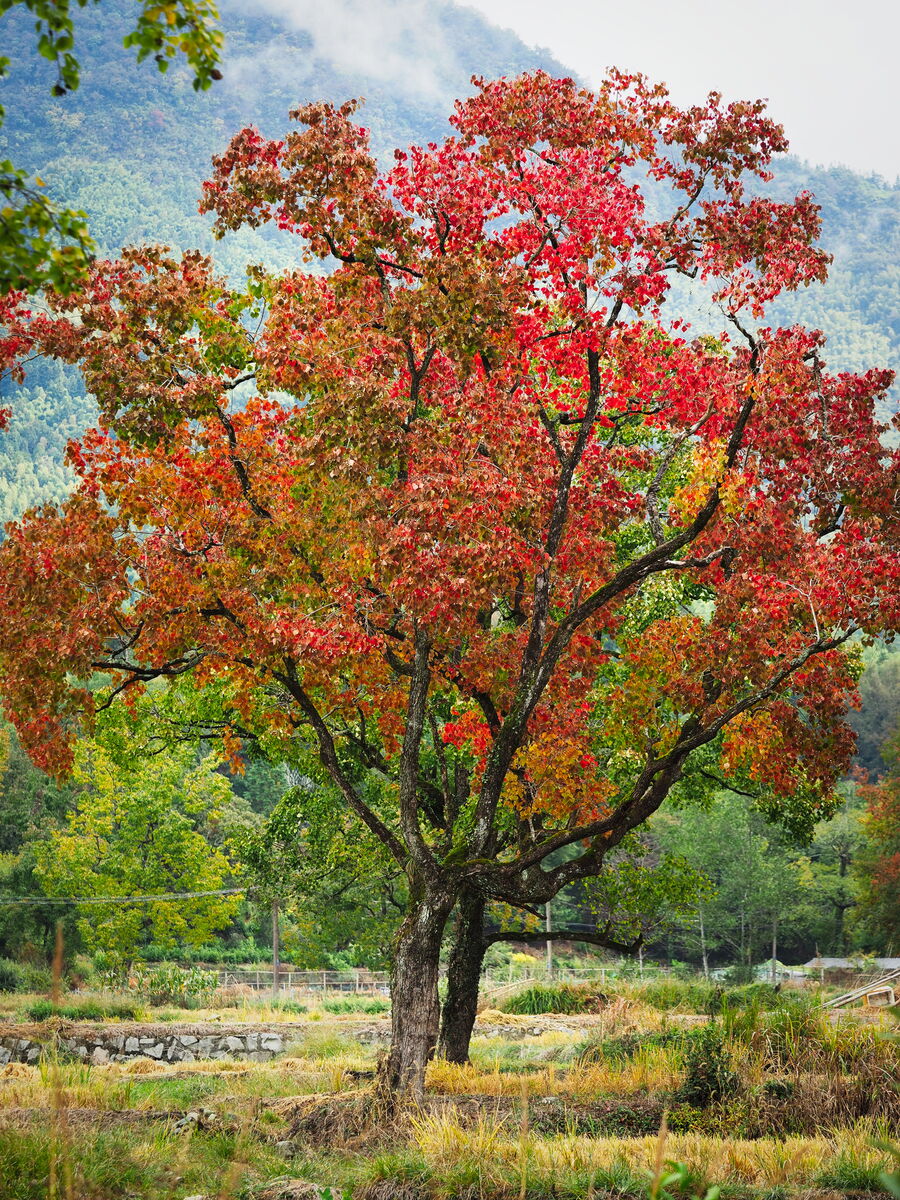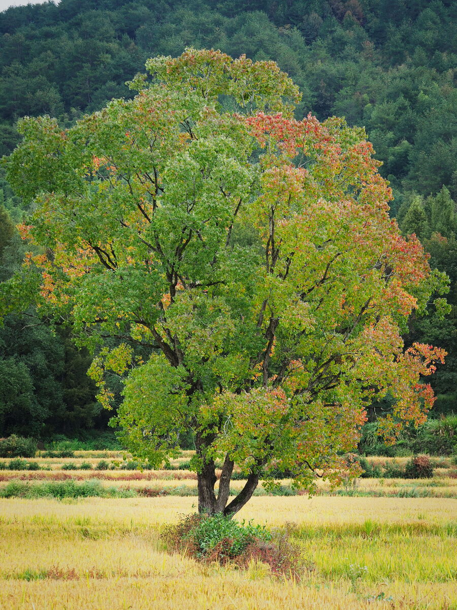 A hike between the rice fields and mountains near Hongcun Village and Tachuan Village in China, Anhui Province.